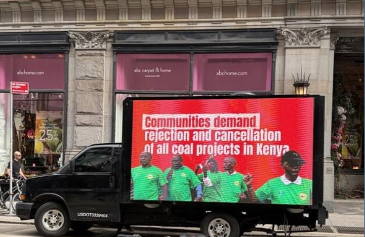 In partnership with deCOALonize Kenya, a truck equipped with LED screens displaying messages about urgent global land and climate justice issues traveled to strategic points across Manhattan to highlight the threats posed by the proposed Lamu coal plant and coal mining in Kitui, Kenya.
